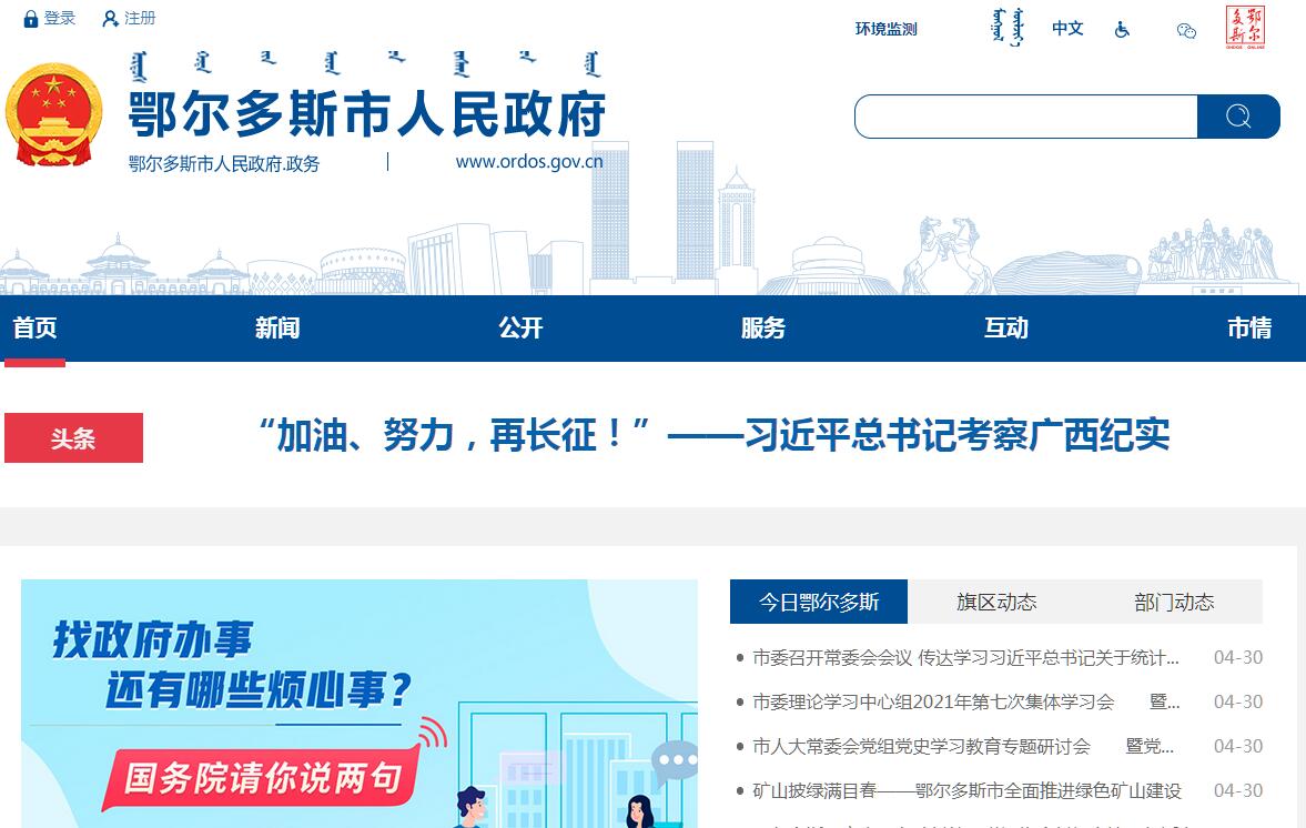 鄂尔多斯市人民政府官方门户网站。