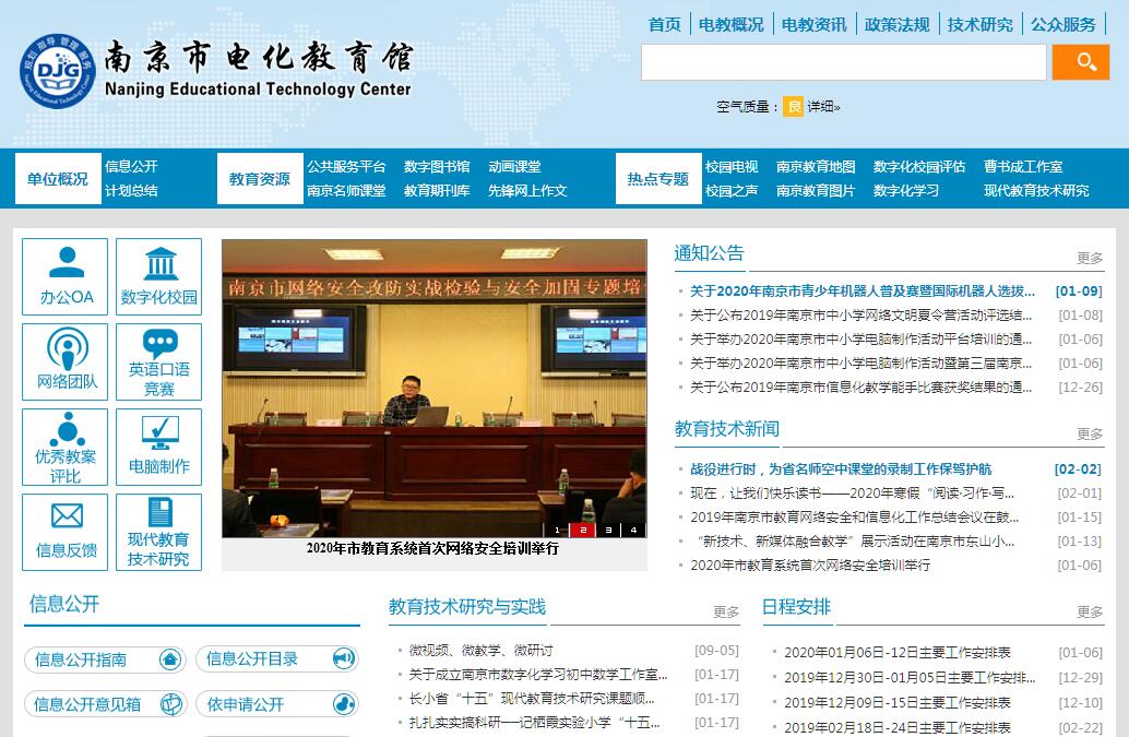 南京市电化教育馆(南京市教育信息中心)是南京市教育局直属事业单位,为全市基础教育、职业教育的教育信息化及现代教育技术工作提供服务、指导、研究、管理,下设办公室、教研中心、网络中心、制作中心、信息管理中心等五个部门。南京市电化教育馆主要负责全市现代教育技术的规划、组织、管理和指导,全市教育信息化建设的规划设计和标准制定,研究制订全市有关教育技术工作的政策、意见并组织实施;研究现代教育技术理论,指导全市现代教育技术应用与研究,组织全市现代教育技术方面的各种活动、评比与竞赛,组织开展全市现代教育技术的课题实验研究工作;组织全市中小学教师现代教育技术的培训;负责全市电教教材、音像资料和信息资源的制作、收集、编存、推广及教育教学资源库的建设与运用;负责全市中小学网络信息安全与管理等工作,南京教育信息网中心站的建设和运作。南京市电化教育馆成立于1978年10月,至今已30年。建馆和发展处在我国改革开放的背景下。市电教馆的成立,为教育的发展开辟了新的领域。市电教馆作为教育现代化的“排头兵”,积极运用新的技术手段,为教育教学注入新的活力,从最初的放映幻灯片、播放教学电影等,逐步发展到运用网络技术、计算机技术及多媒体技术等,大大地丰富了教育教学的手段和内容,为提高教育教学质量提供了有力的支撑,提高了学生学习的质量和效益。进入新世纪,随着信息技术不断发展,在市教育局“加快教育信息化步伐,实现南京教育跨越式发展”的总体思路指导下,南京市电化教育馆积极推进队伍建设、设施配备、软件应用和资源建设几项工程。目前,全市中小学(定点完小以上)实现了4个100%:建成网络教室100%,实现宽带光纤或ADSL接入互联网100%,配备多媒体教室或设备100%,开设信息技术课100%,全市中小学建成校园局域网400家,为教育信息化发展奠定了坚实基础。在加大硬件投入的同时,全市教育信息技术应用形成鲜明特色:以教育信息化基础设施建设为基础,以普及信息技术教育、加强教师信息技术培训为抓手,以信息技术与学科教学整合研究为先导,以教育教学信息资源建设和网络应用为重点。“教育IDC+APS应用服务”的“南京模式”已经进入全省、全国的先进行列。现代教育技术的广泛应用,对全市的教育教学改革,特别是新一轮基础教育课程改革,发挥了积极而有效的支撑作用,促进了全市教育教学质量的全面提高。课题研究成果丰富,“十五”期间以来获国家、省级成果数百个,“十一五”现代教育技术课题研究,全市共有118个课题获得批准立项,其中国家级课题88个,省级课题30个,课题立项数处于全省前列,并有1个南京市教育科学“十一五”规划重点课题。不断加强信息资源建设,建立南京市基础教育资源中心,拥有涵盖中小学各学科的多媒体教学资源库、10万种图书的数字图书馆、上千种杂志的教育教学数字期刊库,以及教研人员和骨干教师制作的学科专题网站、供适时点播的“网络大课堂”和拥有近19万全国注册用户的“小学生网上作文”网站等。教育音像作品多年来在市、省和国家级评比中频频获奖,在全国电教系统享有良好的声誉。南京市电化教育馆抓住发展机遇,奋发创新进取,取得了显著成绩,1998年以来3次荣获省文明单位称号、4次荣获市文明单位称号。2007年,被南京市总工会评为“工人先锋号”先进集体。
