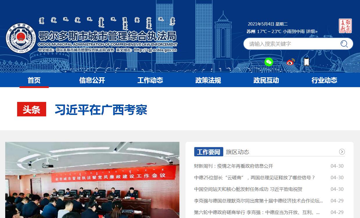 鄂尔多斯市城市管理综合执法局官方网站。