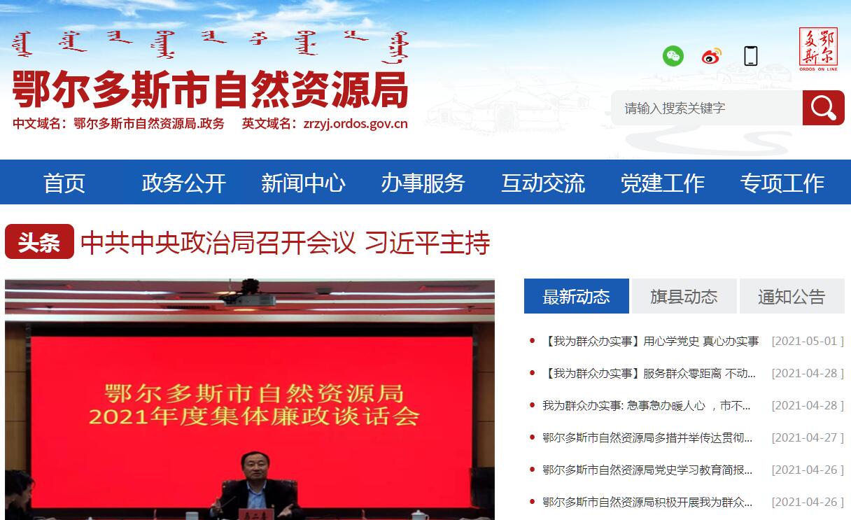 鄂尔多斯市自然资源局官方网站。