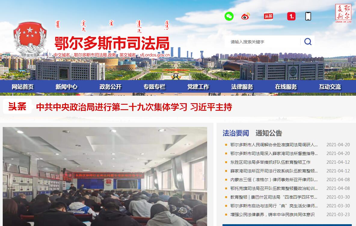 鄂尔多斯市司法局官方网站。