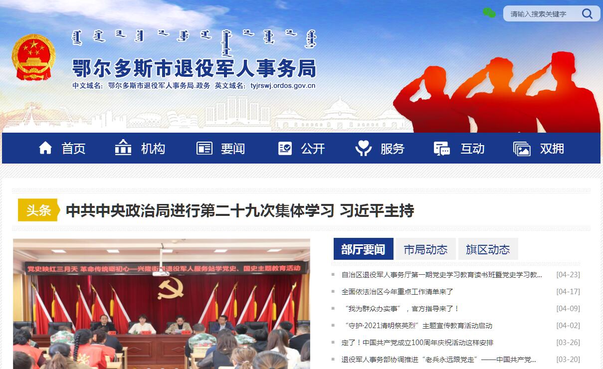 鄂尔多斯市退役军人事务局官方网站。