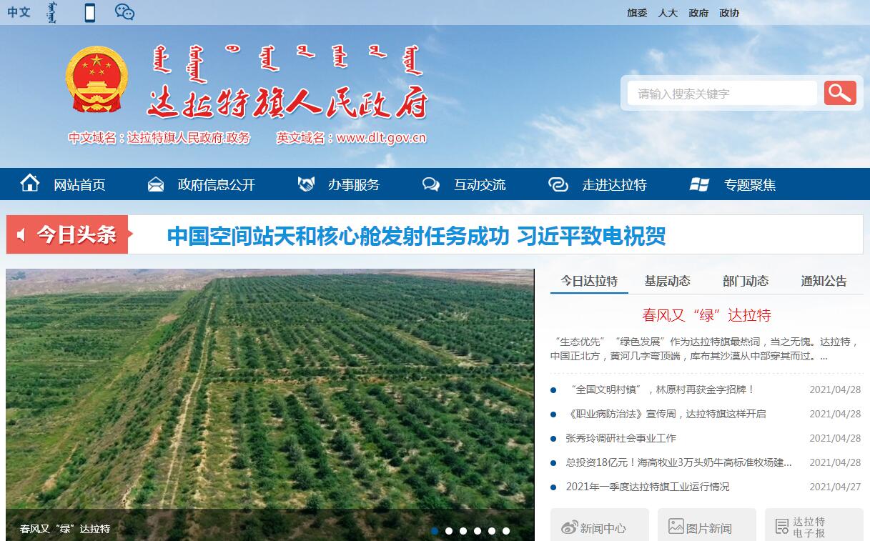 达拉特旗人民政府官方门户网站。