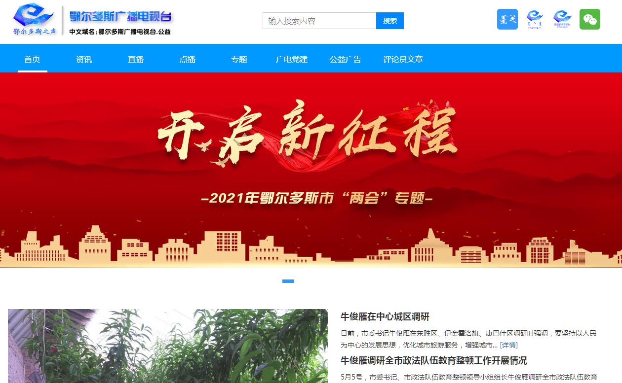 | 网站简介: 鄂尔多斯“新闻、视听、生活、服务”门户网站——鄂尔多斯之声,急速登陆,随时分享。承载着一如既往的精彩内容,期待您的全新体验,欢迎登录浏览! |