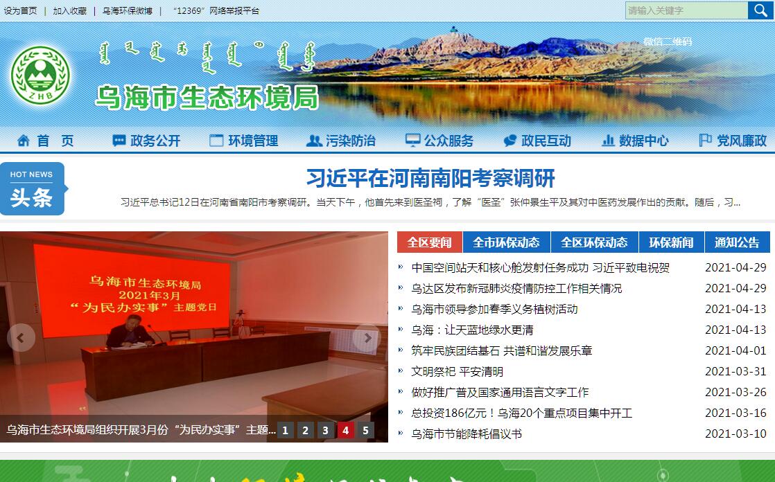 乌海市生态环境局官方网站。