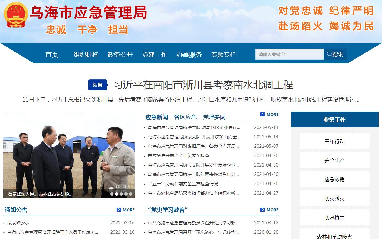 乌海市应急管理局官方网站。