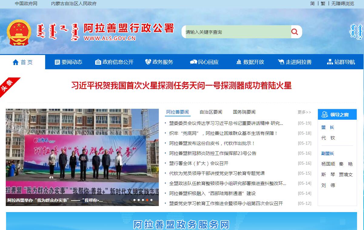 阿拉善盟行政公署官方门户网站。