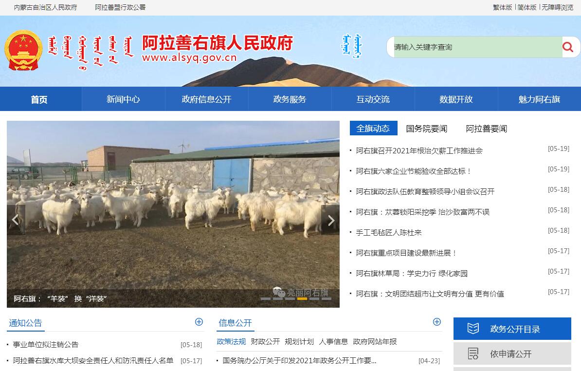 阿拉善右旗人民政府官方门户网站。