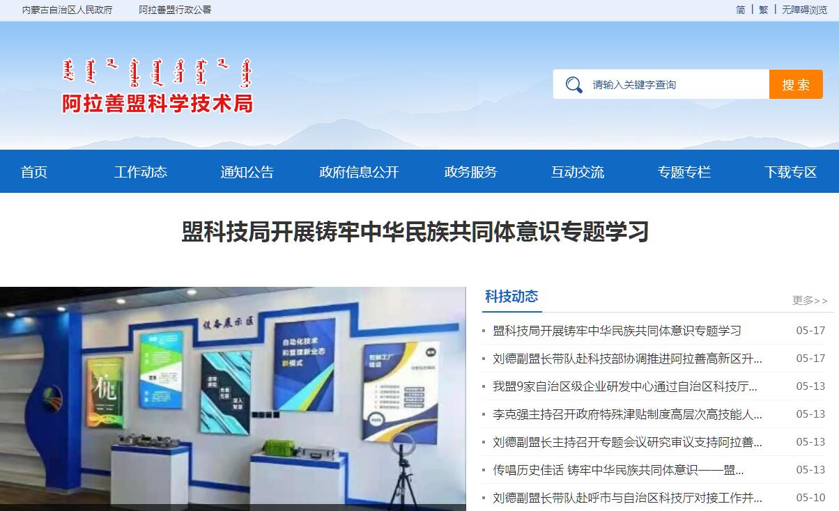 阿拉善盟科学技术局官方网站。