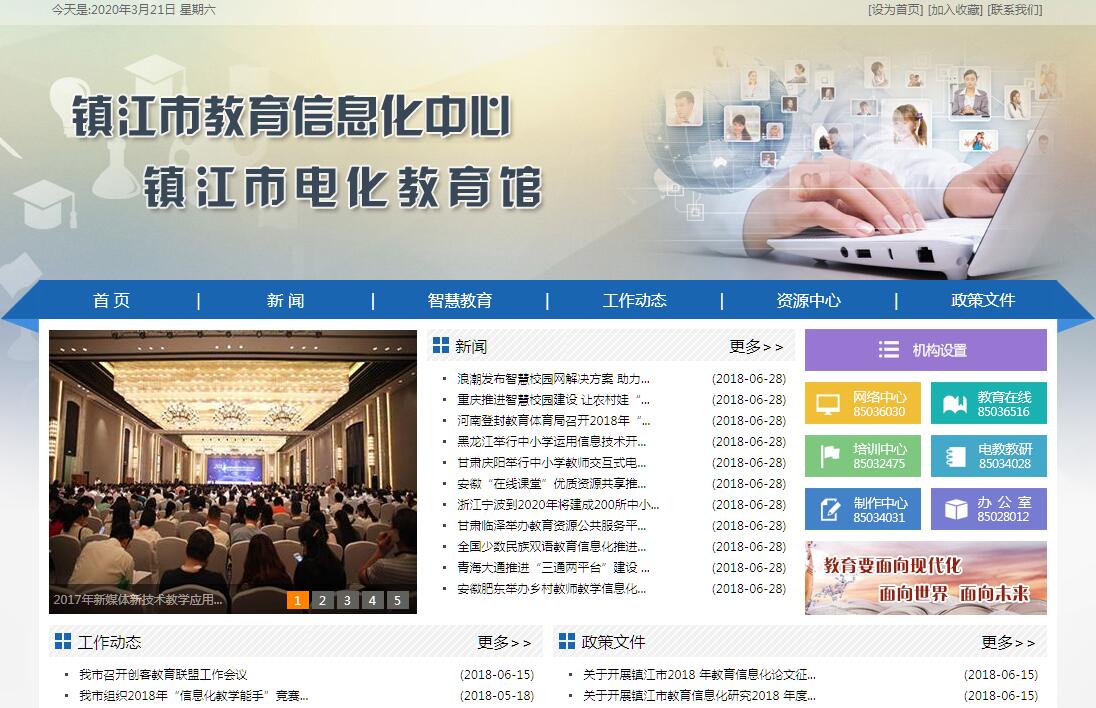 电化教育,在镇江有久远的历史,民国24年(1935年)江苏省立镇江民众教育馆就开始用幻灯、电影、收扩音等设备用于民众教育,据《电化教育学》、《回顾我国早期的电化教育》等专著、文献记载,“电化教育”一词就首创于省立镇江民众教育馆。1984年5月,建立镇江市电化教育馆。 目前市电化教育馆的主体业务是:在教学领域里推动运用幻灯、电影、录音、电视、录像、电子计算机等器材,形成最优化的教学手段,增强教学效果。镇江市电化教育馆建立以来,对实施电化教育进行广泛宣传,确定电教试点学校,制订《镇江市电教试点学校基本要求(试行)》,总结和推广试点单位的经验,建立各学科电教中心教研组,举办电化教育研讨会和电化教育展览会。此外,还编印《电教通讯》5期及《电教专辑》2册,交流开展电化教育的信息与经验。电教馆成立后,已购置摄像机、录像机、录音机、照相设备、微型电子计算器、监视机以及编辑系统、电视教育卫星地面单收站等设备,形成了一定的电教示教和制作能力,共录制成《在希望的原野上》、《前进中的丹阳》等10余部电视录像片,还制作了体育、生物、地理等优秀课的课堂教学录像资料。 目前该馆设有教研室、制作室、资料室、演播室、办公室及电教声像服务部,共有专职人员9人。