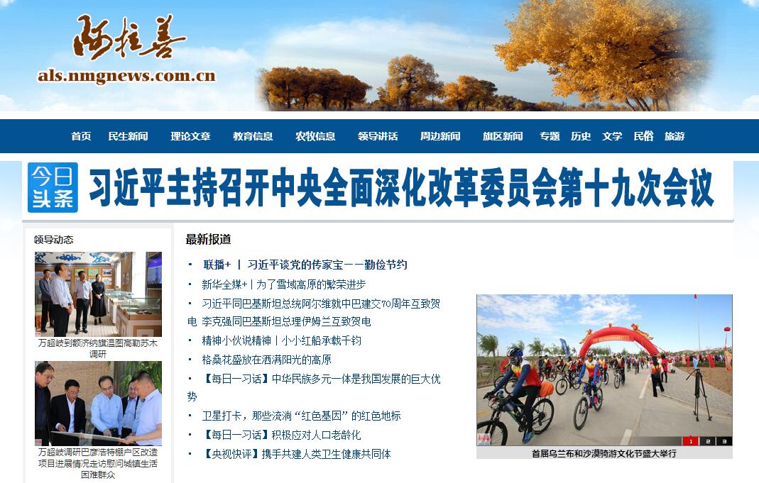 | 网站简介: 阿拉善新闻网是由阿拉善日报社承办的综合新闻网站,是作为“让世界了解阿拉善,让阿拉善走向世界”的重要窗口,阿拉善新闻网在第一时间向全球提供权威和真实的阿拉善地区各类新闻,同时为阿拉善打开一个放眼世界的窗口,及时发布国内外重要新闻。 |