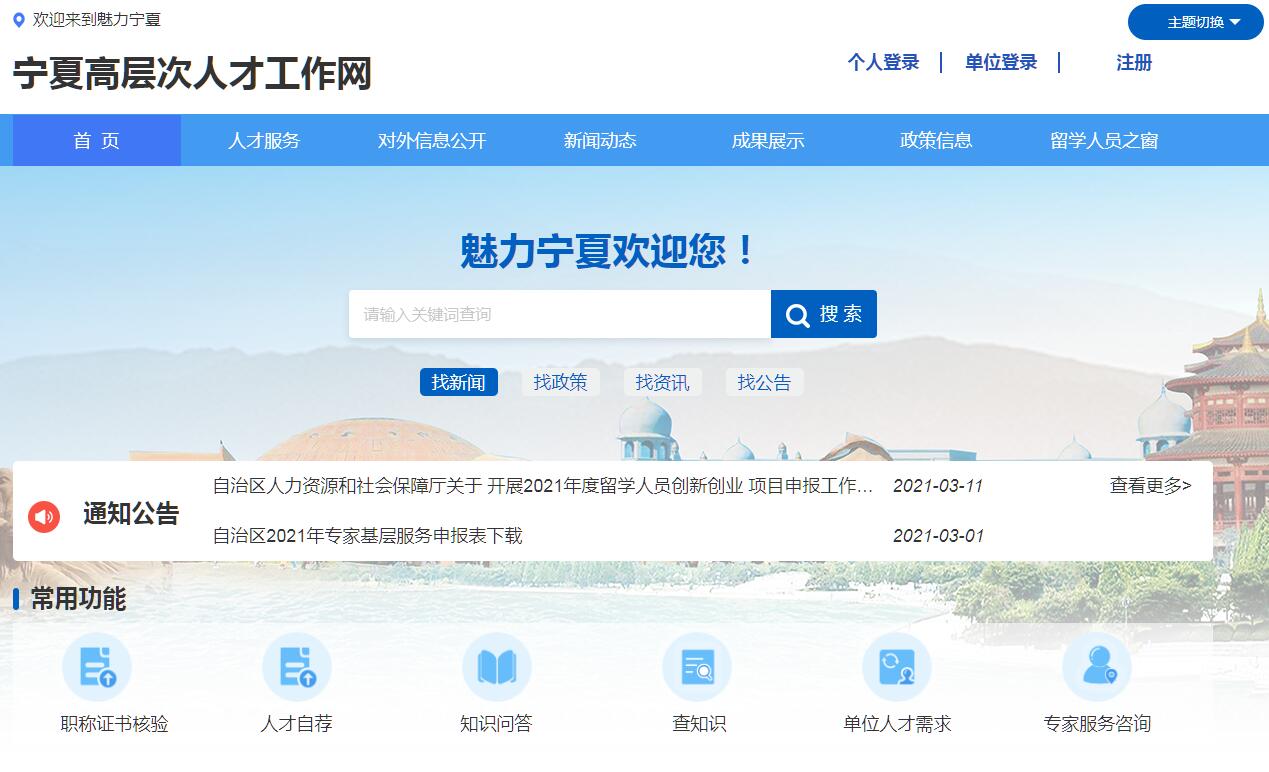 宁夏高层次人才工作网由宁夏回族自治区人力资源和社会保障厅主办。