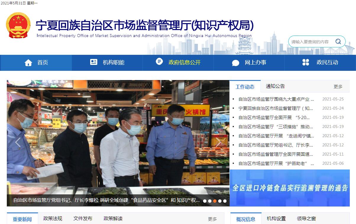宁夏回族自治区市场监督管理厅(知识产权局)官方网站。