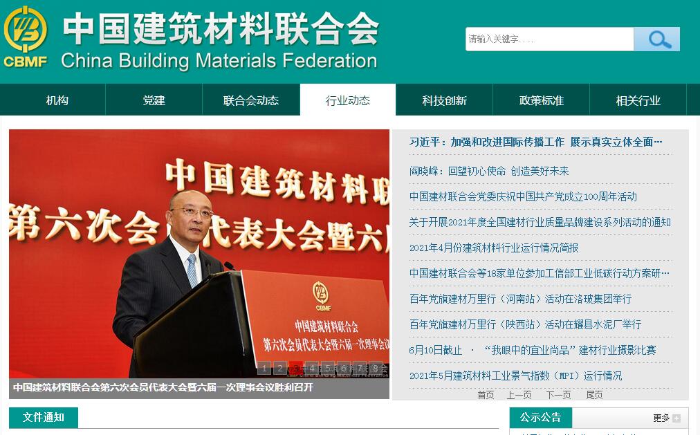 中国建筑材料联合会官方网站。