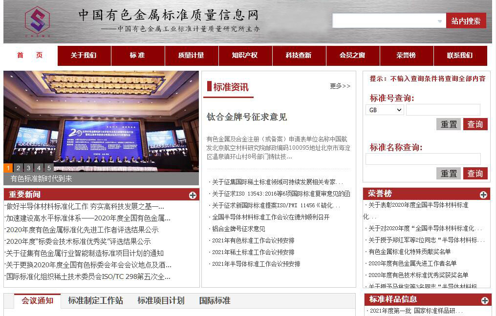 中国有色金属工业标准计量质量研究所官方网站。