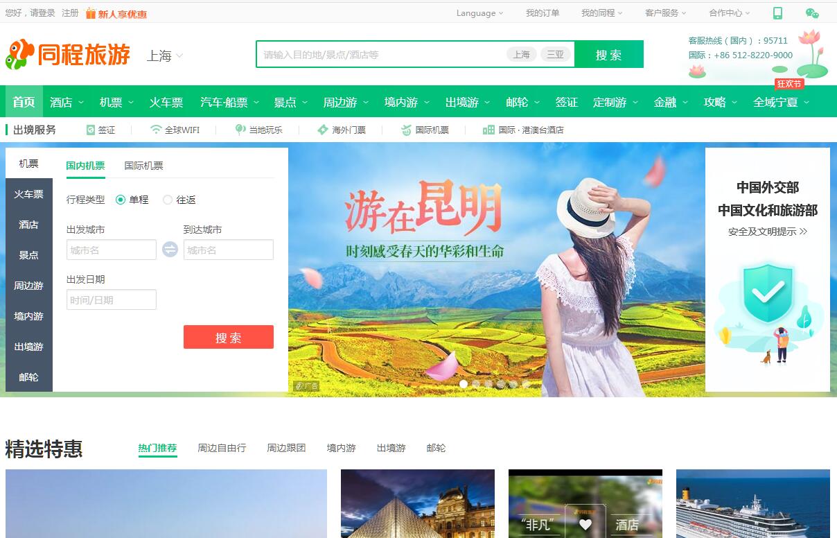 同程旅游的高速成长和创新的商业模式赢得了业界的广泛认可,2014年获得腾讯、携程等机构逾20亿元人民币投资,2015年7月,又获得万达、腾讯、中信资本等超过60亿元人民币的战略投资,截至2017年8月融资总额已超过90亿元人民币。同程旅游是国家高新技术企业、商务部首批电子商务示范企业,连续多年入选“中国旅游集团20强”,2016年位列中国旅游企业集团第五位。同时,同程旅游多年入选中国互联网企业百强榜单,2017年位列第26位。新的十年,同程旅游以“休闲旅游第一名”为战略目标,积极探索线上线下和体验相结合的“新旅游”模式,在发力机票、火车票、酒店、金融等业务外,积极布局境外游、国内游、周边游等业务板块,目前在中国景点门票预订、邮轮等多个领域处于市场领先位置。同程旅游旗下运营同程旅游网(www.LY.com)和同程旅游手机客户端,2016年服务人次近3亿,让更多人享受旅游的乐趣是同程旅游的使命。同程旅游(LY.COM)是一家专业的一站式旅游预订平台,提供近万家景点门票、特价机票、出国旅游、周边游、自驾游及酒店预订服务;专业旅游线路服务、让您的旅行更安心!