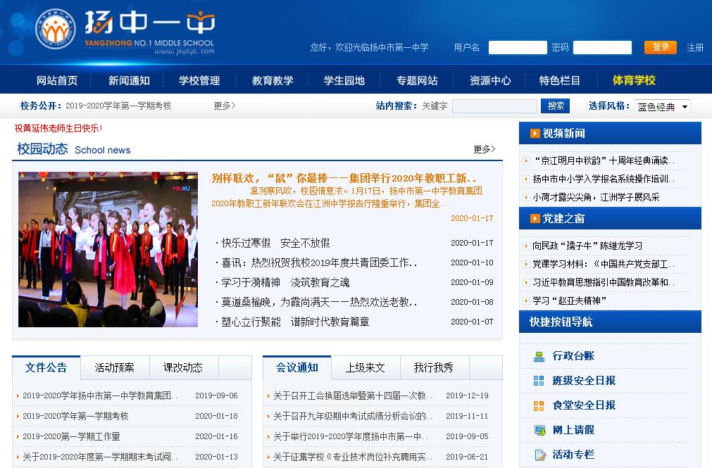 扬中市第一中学坐落于美丽的江中小岛——扬中。学校成立于1981年,目前是扬中市规模最大的一所初级中学。现有59个班级,2400余名学生,近300名教师,其中中学高级教师102人,市级学科带头人、骨干教师20余名。学校办学条件先进。微机房、实验室等各类专用教室20余个,设施齐全、功能齐备。现代化的图书馆,各类藏书近10万册,电子图书250000余册。师生阅览室内各类期刊杂志近200种,学校自主建设电子期刊平台,能提供300余种电子期刊。学校率先实现了教育信息化,拥有60余套多媒体教学设施,网络直播室可同时容纳200人。学校积极推进信息技术与课程整合,教师使用多媒体课件上课学科覆盖率100%,多名教师在省市信息技术与课程整合优质课评比中获一、二等奖。学校建有校园闭路电视系统、校园广播系统、校园安全监控系统、百兆宽带校园局域网。学校网站资源丰富,教务管理、学籍管理、人事管理、财务管理、图书管理等校园管理办公系统一应俱全,充分发挥了服务于教、服务于学、服务于管的功能。学校网站每年都被评为“镇江市十佳优秀校园网站”与“镇江市‘三服务’优秀网站”,2011年获“全国百佳校园网站”称号。学校坚持素质教育,以办一所提供优质教育服务的精品学校为目标,坚持“以人为本,走内涵发展之路”。精致管理、书香校园彰显学校特色;“心灵对话”、“信心宣誓”成为德育品牌;高效课堂、魅力教师成为减负增效的突破口。近年来,有80多名教师在省、市教学竞赛中获一、二等奖,百余名学生在国家级学科、技能竞赛中获奖。学校先后被评为“江苏省示范初中”、“江苏省德育先进学校”、“江苏省绿色学校”、“江苏省文明学校”、“江苏省和谐校园”、“江苏省现代教育技术应用先进单位”、“江苏省群众体育先进集体”、“江苏省青少年科技教育特色学校”、“镇江市模范学校”、“镇江市文明单位”、“镇江市中小学学生行为规范示范学校”、“镇江市教育信息化先进学校”“镇江市首批一类特色学校”。学校还被认定为“十一五”全国教育技术重点课题实验学校、江苏省教学资源研发基地、江苏省体育传统项目学校”、“国家曲棍球奥林匹克后备人才基地”、“江苏省未成年人阳光网络实践基地”。如今扬中市第一中学正致力打造生态型的美丽花园、智能化的现代校园和智慧式的成长乐园。