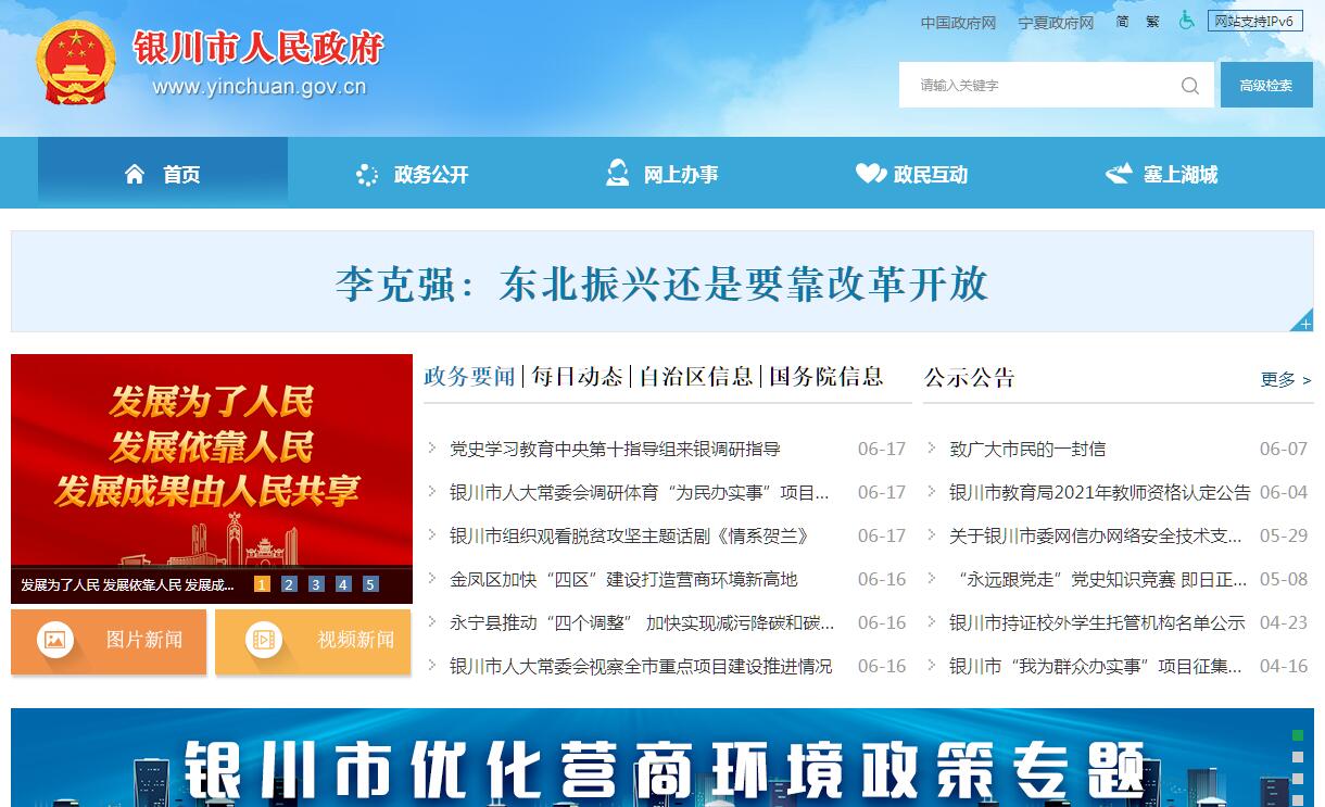 银川市人民政府官方门户网站。