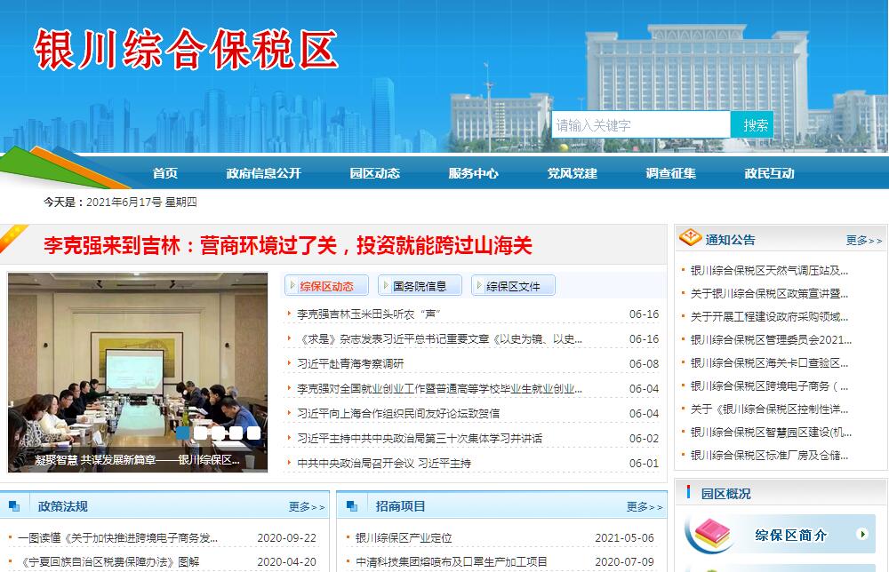 银川综合保税区管理委员会官方网站。