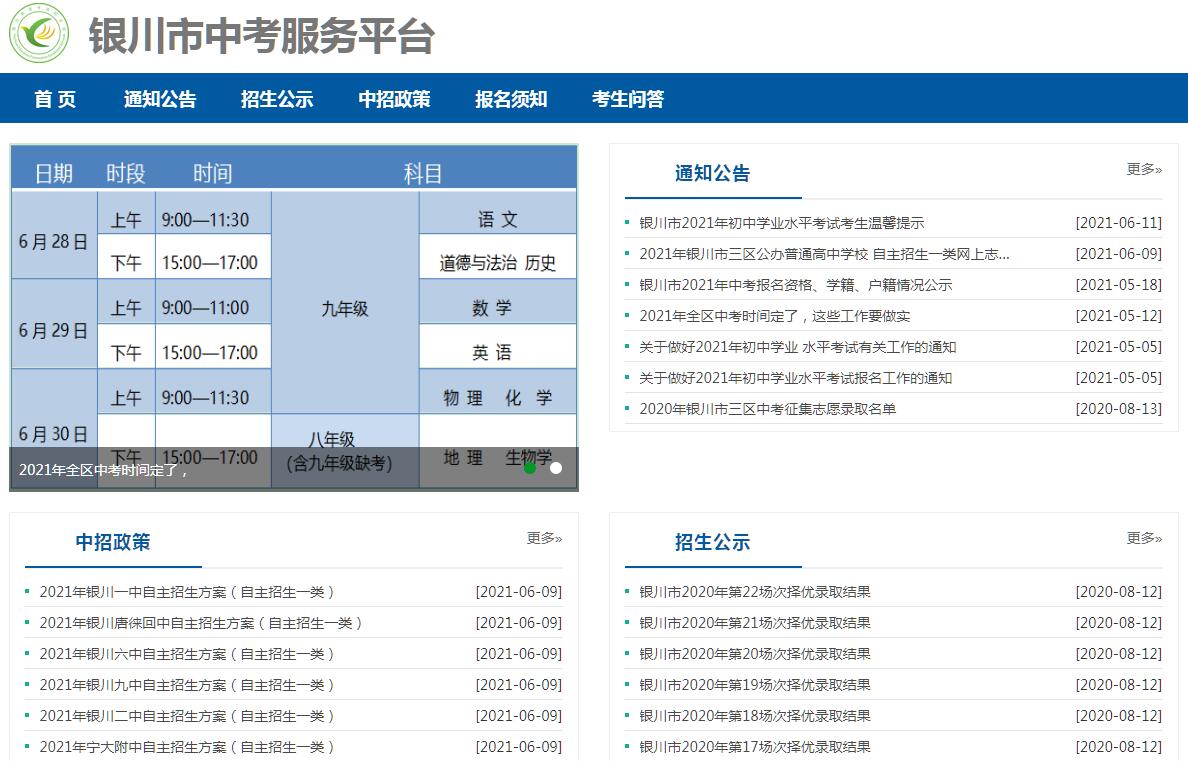 银川市中考服务平台官方网站。