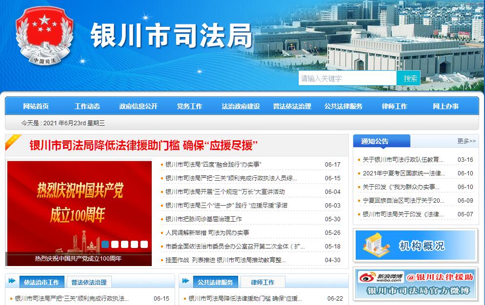 银川市司法局官方网站。