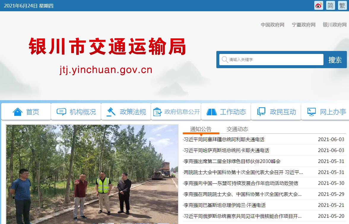 银川市交通运输局官方网站。