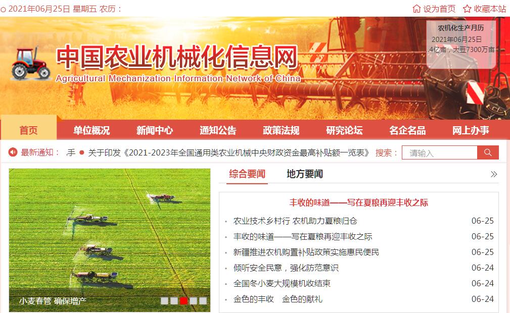 中国农业机械化信息网由农业农村部农业机械试验鉴定总站主办。