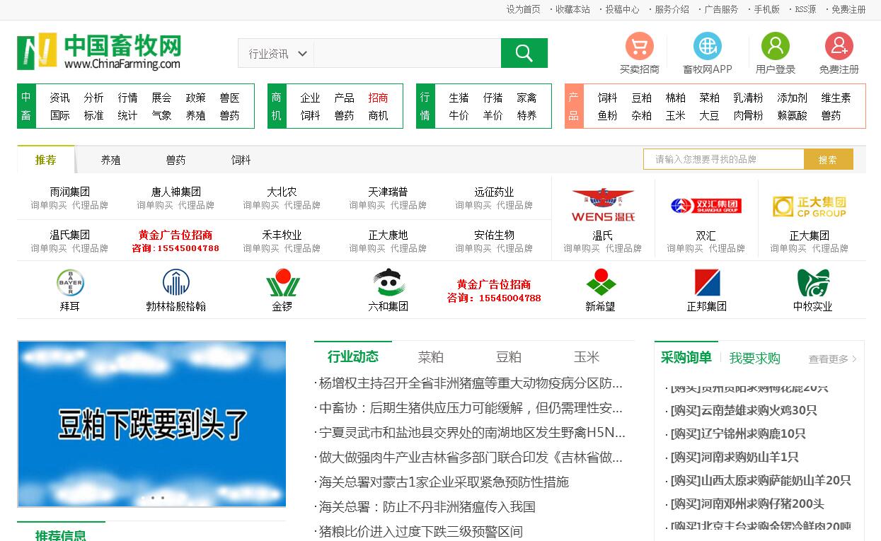 | 网站简介: 中国畜牧网(简称中畜网) 是国内领先的畜牧行业门户网站之一,为畜牧、饲料、兽药、兽医相关企业、 养殖合作社及养殖户提供畜牧行业资讯、电子商务、企业招商和活动举办、互联网+平台开发等服务。 |