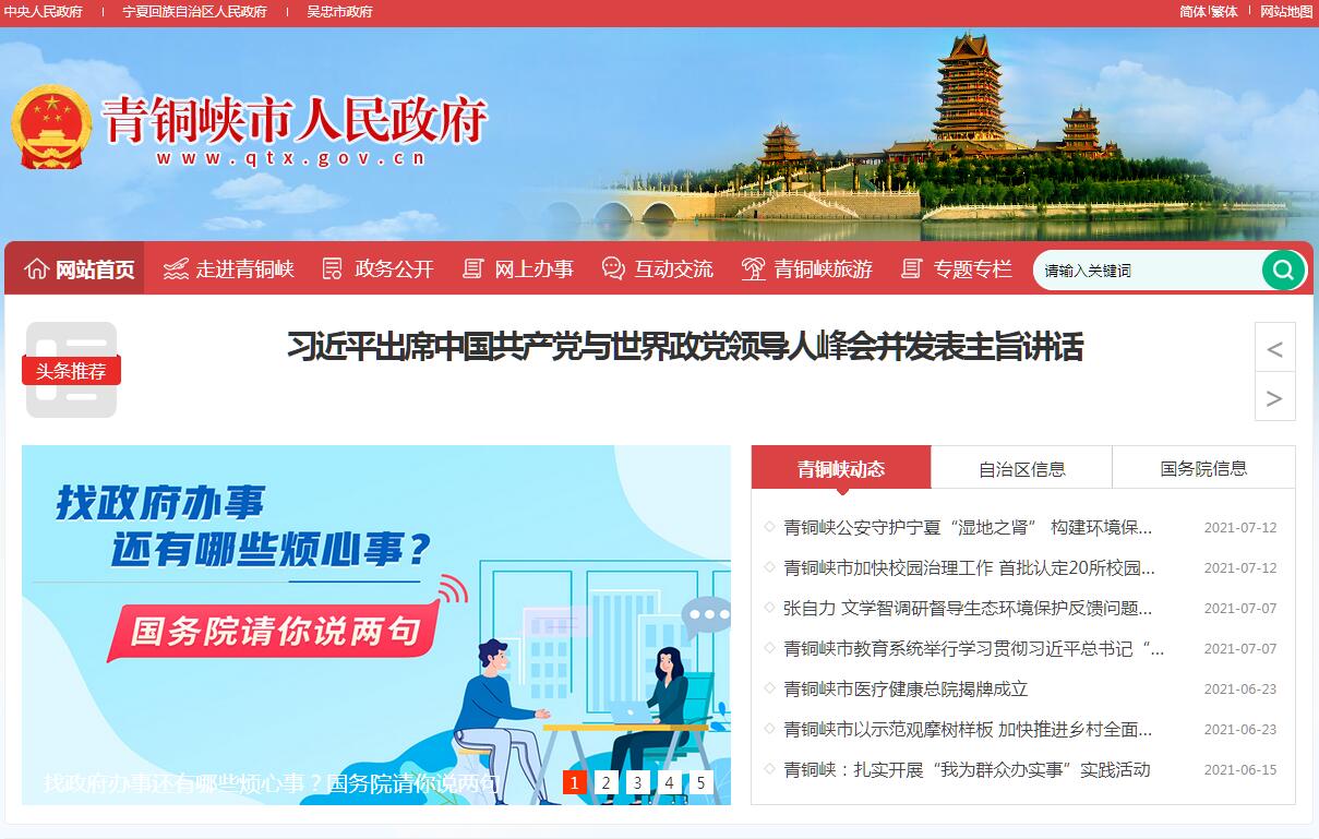 青铜峡市人民政府官方门户网站。
