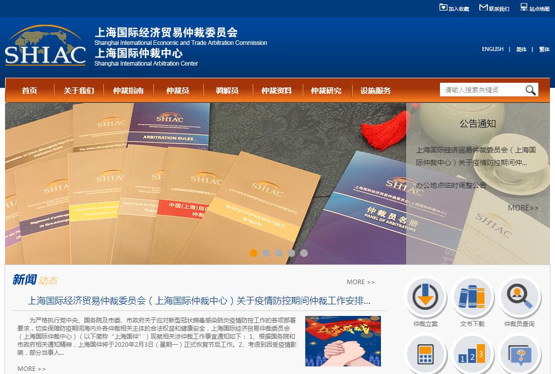 上海国际经济贸易仲裁委员会(同时启用“上海国际仲裁中心”的名称,原名“中国国际经济贸易仲裁委员会上海分会”,英文简称“SHIAC”,下称“上海国际仲裁中心”)是由上海市人民政府于1988年批准设立、并经司法登记的独立仲裁机构,以独立、公正、专业、高效的仲裁服务为当事人解决商事争议。经过三十年的发展,上海国际仲裁中心的受案数量逐年上升,受理案件除传统商事争议外,还涉及到私募股权、互联网金融、融资租赁、航空服务、能源与环境权益等新型案件。案件当事人遍及全国各地及世界上70余个国家和地区,仲裁裁决依据《纽约公约》已在近50个国家和地区得到承认和执行。上海国际仲裁中心《仲裁员名册》共有仲裁员965名,分别来自74个国家和地区,其中中国内地仲裁员604名,占62.59%;外籍及港澳台地区仲裁员361名,占37.41%。上海国际仲裁中心始终坚持国际化的发展战略。2013年10月,上海国际仲裁中心设立了中国(上海)自由贸易试验区仲裁院,制定了与国际接轨的《中国(上海)自由贸易试验区仲裁规则》。2014年8月,上海国际仲裁中心设立了世界首个航空仲裁平台——上海国际航空仲裁院,为解决国际航空纠纷提供了重要途径。2015年10月,上海国际仲裁中心设立了首个金砖国家间争议解决平台——金砖国家争议解决上海中心,为金砖国家之间产生的跨境争议提供解决机制。2015年11月,上海国际仲裁中心设立了首个中非间争议解决平台——中非联合仲裁上海中心,为中非商事主体提供纠纷解决法律服务。上海国际仲裁中心正积极致力于充分发挥仲裁在争议解决及法治环境建设方面的重要作用,积极服务中国(上海)自由贸易试验区及上海建设国际经济、金融、贸易、航运中心和科创中心的国家战略,持续提升仲裁业务国际化、专业化程度,奋力打造亚太乃至全球仲裁中心。