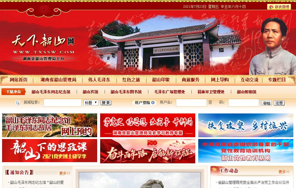 天下韶山官方网站由湖南省韶山管理局主办。