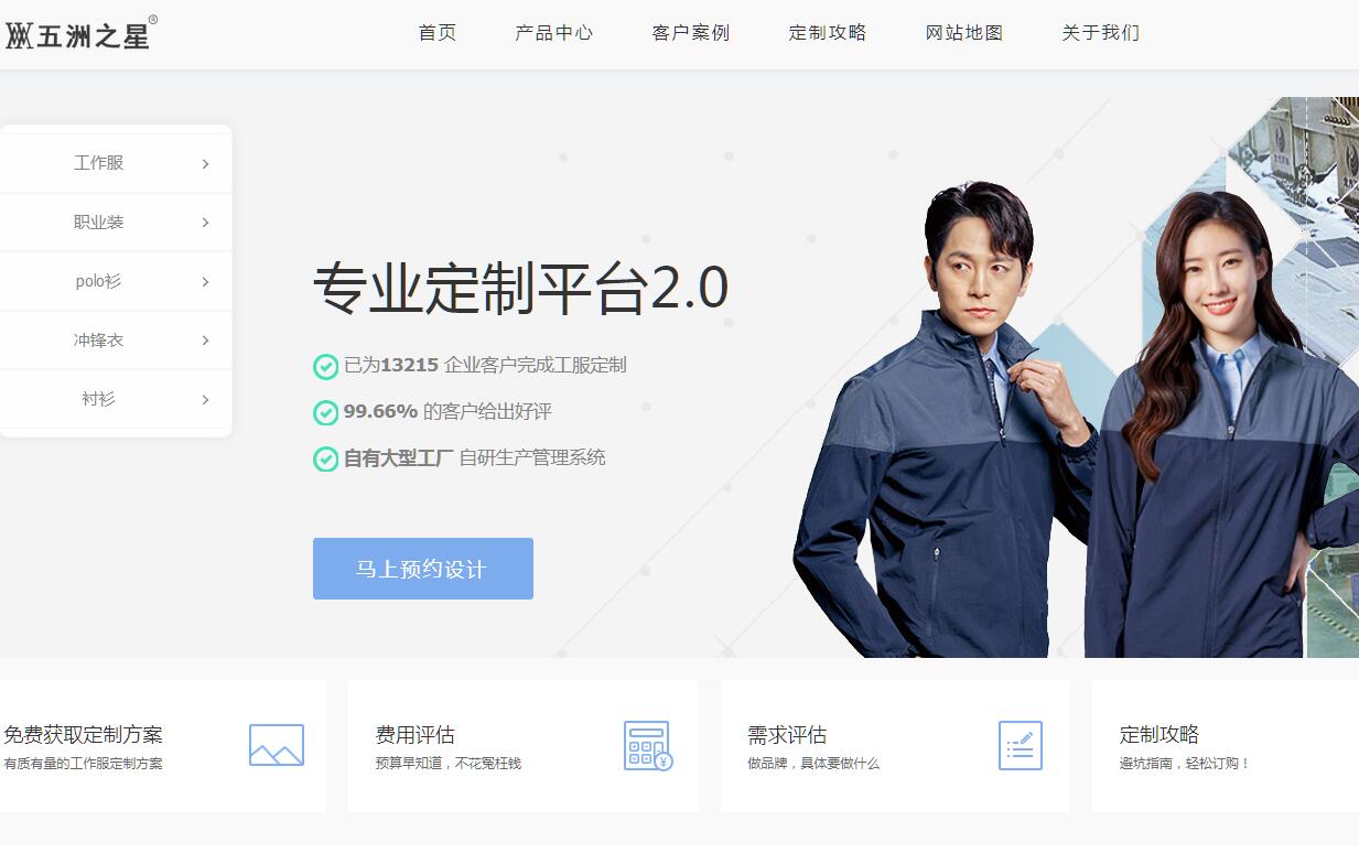 | 网站简介: 「五洲之星」万家品牌企业的选择,有质有量的工服定制厂家!为企业,国家单位提供工服定制,职业装定制,冲锋衣定制等一体化服装定制服务,可信赖的专业服装定制平台! |