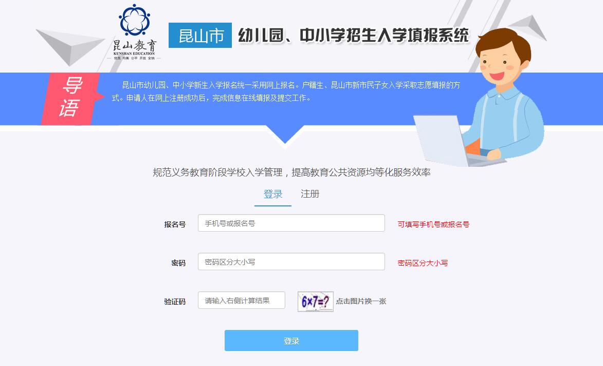 昆山市幼儿园、中小学招生入学填报系统官方网站。