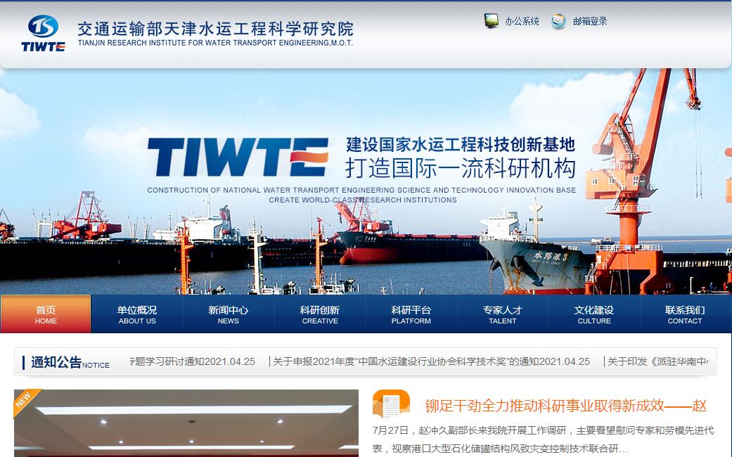 交通运输部天津水运工程科学研究院官方网站。