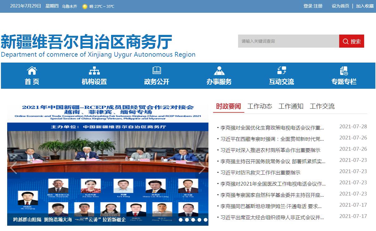 新疆维吾尔自治区商务厅官方门户网站。