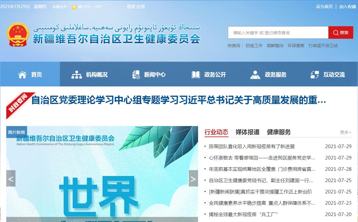 新疆维吾尔自治区卫生健康委员会官方门户网站。