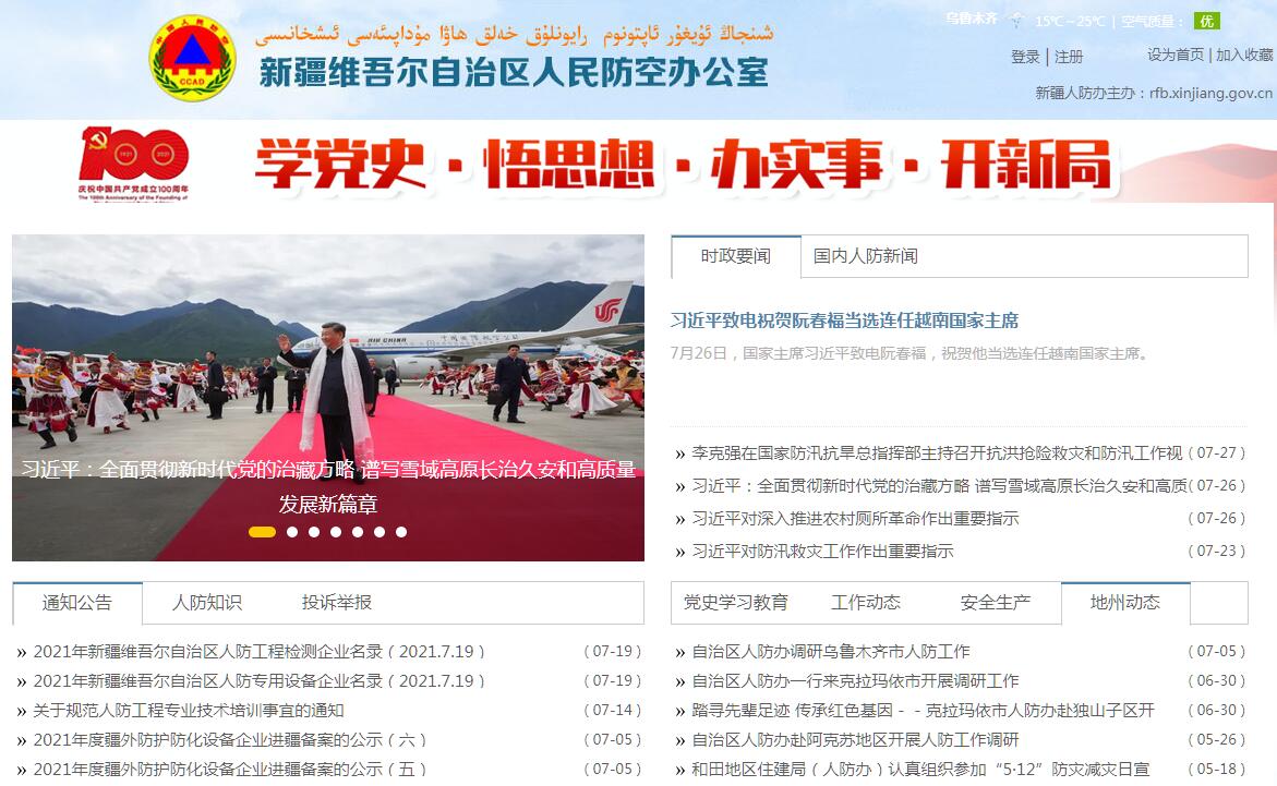 新疆维吾尔自治区人民防空办公室官方门户网站。