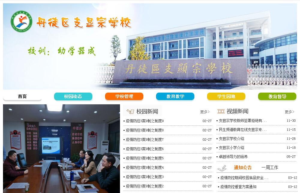 丹徒区支显宗学校是一所九年一贯制学校,她由原支显宗中学和上党中心小学于2014年8月易地合并组成的新学校。支显宗先生是一位爱国的新加坡籍华人。从1995年起,新加坡支显宗基金会就一直资助支显宗中学的新建和发展。目前,校园建筑错落有致,环境幽雅,教学、运动、生活区域分布合理。学校占地面积72623平方米,建筑面积48975平方米,校园绿化面积近1万平方米,运动场面积17500平方米。现有班级49个,学生1854名,教职工159名,其中,专任教师147名,中学高级教师24名,市骨干教师12名,区骨干教师14名,区“教师标兵”、“教坛新秀”10名。学校按教育现代化的要求配置教育教学设施,教育装备达省Ⅰ类标准。图书馆拥有7万余册图书,生均60册,并配备电子图书31GB。教师和学生阅览室各2个,配有4个计算机网络教室,2个专用多媒体教室(可作电子阅览使用),357台电脑,生机比为5﹕1。设有校园网络控制中心,每个教室和功能室都配有电视机。建立了100兆校园网,终端连到每个教室、功能室和办公室。建有400米塑胶田径运动场,有篮球场6片,排球场4片,羽毛球场4片,足球场1片。学校始终坚持正确的办学方向,秉承“幼学器成”的校训,遵循“教育即培养良好的习惯”的办学理念,瞄准“培养学生具有正确价值取向和审美情趣的人”的目标来统领学校发展。学校以阳光教育理念引领学校发展,把打造阳光校园作为学校特色,把课堂作为培养阳光学生的主阵地和主渠道,积极施行阳光教育,大力推行导师制下的小组合作学习,促进每一位学生均衡发展,阳光成长。学校依托地方文化,积极探索校本课程建设。学校“以茶启智,以茶育人”的“茶文化研究”综合实践校本课程先后荣获省教育成果一等奖、国家教育科研成果二等奖,基于“茶文化研究”构建的“清怡”教育逐渐成为学校鲜明的特色。近年来,学校先后获得许多荣誉,主要有:江苏省教育现代化示范初中、江苏省实施素质教育先进学校、江苏省绿色学校、江苏省平安校园、江苏省和谐校园、江苏省依法治校示范校、江苏省模范职工之家、江苏省健康促进学校(银牌)、镇江市模范学校、镇江市德育先进学校、镇江市教育现代化初中、镇江市教育信息化先进学校、镇江市数字化校园、镇江市教科研先进学校、镇江市安全文明学校、镇江市学生行为规范示范校、镇江市学生文明礼仪示范校、镇江市语言文字规范示范校、镇江市法制教育先进学校、镇江市法制教育示范校、镇江市廉政文化进校园示范校、镇江市廉洁教育示范点、镇江市规范收费示范校、镇江市禁毒示范校、镇江市特色学校(Ⅱ类)等,在社会上享有良好的声誉。