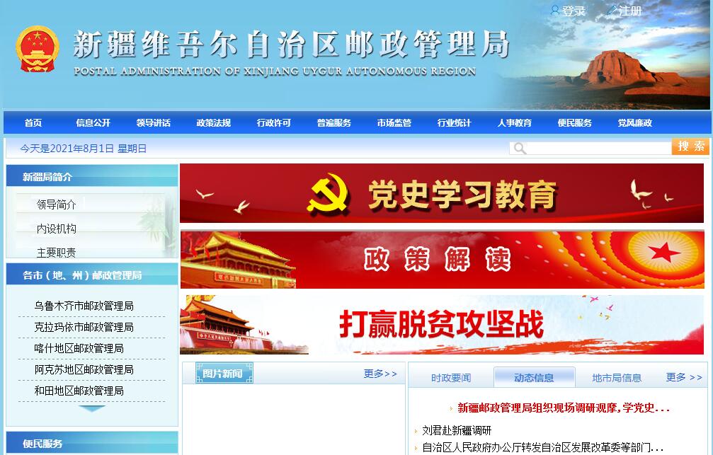 新疆维吾尔自治区邮政管理局官方门户网站。