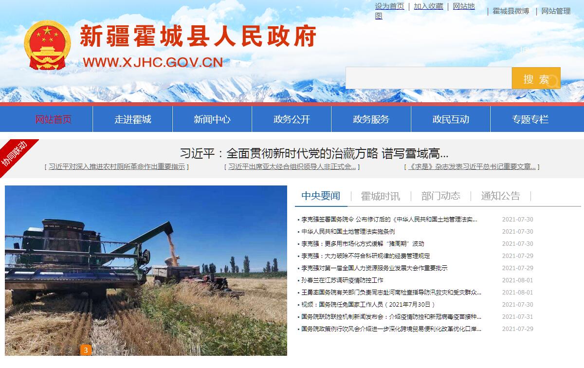 霍城县人民政府官方门户网站。