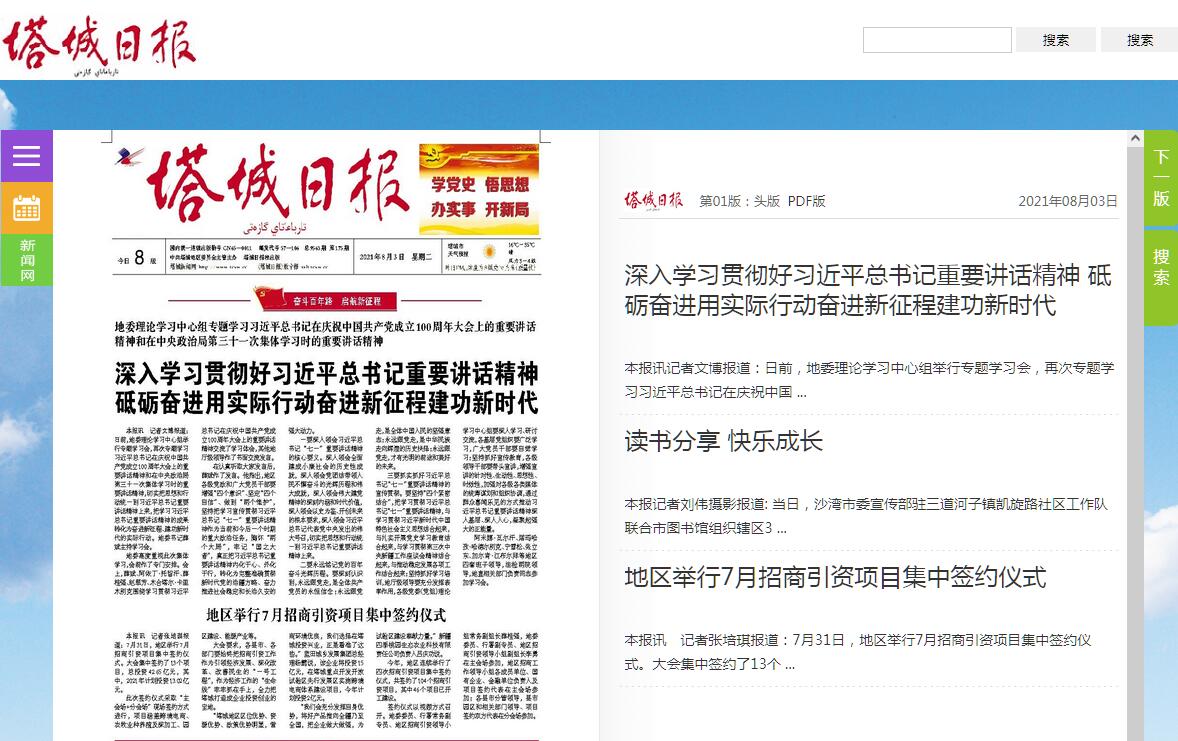 | 网站名称: | 塔城日报电子版 | ||