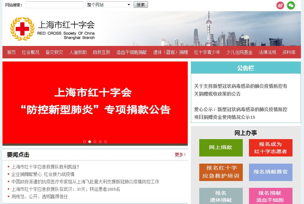 1904年中国红十字会在上海诞生。1911年上海市红十字会成立,初名为中国红十字会沪城分会,现名为中国红十字会上海分会(上海市红十字会)。上海市市长应勇担任上海市红十字会名誉会长,副市长翁铁慧担任会长。上海市红十字会内设机构有综合办公室、信息传播部、赈济救护部、志愿服务部、基层组织和青少年部以及上海市红十字备灾救灾中心和上海市红十字事务中心两个直属单位。至2017年底,上海市红十字会系统共有16个区红十字会,建有宝钢、铁路、武警卫生系统三个行业红十字会。全市16个区220余个街(镇)、开发区均建立了红十字会;全市共有各类红十字基层组织3023个,专职工作人员257人,兼职工作人员483人。其中学校红十字会1630余个,冠名红十字医疗机构72所,团体会员单位960余个;共有红十字个人会员近90万名(其中青少年会员58.64万名);红十字志愿者近9万人。在社区居民小区建立了3944个红十字服务站,设立了志愿者、救护员、报灾员系统,基本形成了较为完整的红十字会基层组织网络体系。上海市红十字会与俄罗斯、德国、日本以及韩国等国家有关城市的红十字会有着良好的联系,与香港、澳门红十字会和台湾地区红十字组织保持紧密的交往,定期与多个国家(地区)的红十字会开展红十字青少年夏令营活动。与国内各省、自治区、直辖市红十字会保持着密切的合作。上海市红十字会是从事人道主义工作的社会救助团体。其机关的主要工作任务是:(一) 宣传、贯彻和执行各项红十字会法规、条例;依法指导全市各级红十字会工作。(二) 制定、实施上海市红十字会事业发展规划;负责本市红十字会的组织建设工作;命名、指导全市红十字医院、红十字护理医院、红十字里弄卫生站;开展体现红十字宗旨的各项工作。(三) 开展救灾的准备工作,依法募集物资和款项,接受、处理境内外组织和个人的捐赠;配合上级红十字会或协助政府实施赈灾救援。(四) 协助政府开展人道救助,帮助改善最易受损害群体的境况及开展人道领域内的社会服务。(五) 制定、实施本市群众性现场初级急救的培训规划,培训、考核和命名本市群众性红十字救护队,普及卫生救护和防灾、防病知识。(六) 组织、管理本市红十字志愿者队伍,开展自愿无偿捐献遗体工作,负责建设中华(上海)骨髓库、红十字眼库及脐带血库等工作,协助政府部门开展无偿献血的宣传和表彰工作。(七) 培养红十字青年会,开展红十字青少年活动;管理、实施上海市中小学生、婴幼儿住院医疗互助基金工作。(八) 开展失散亲属的寻亲和红十字台湾事务工作。(九) 依照国际红十字运动原则,发展与境外红十字会、红新月会的合作和交流活动。(十) 承办市委、市政府交办的其他事项。