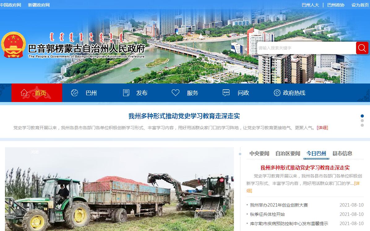 巴音郭楞蒙古自治州人民政府官方门户网站。