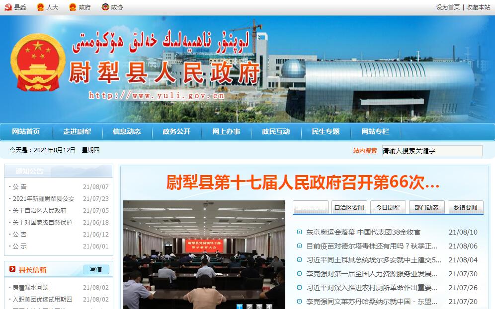 尉犁县人民政府官方门户网站。
