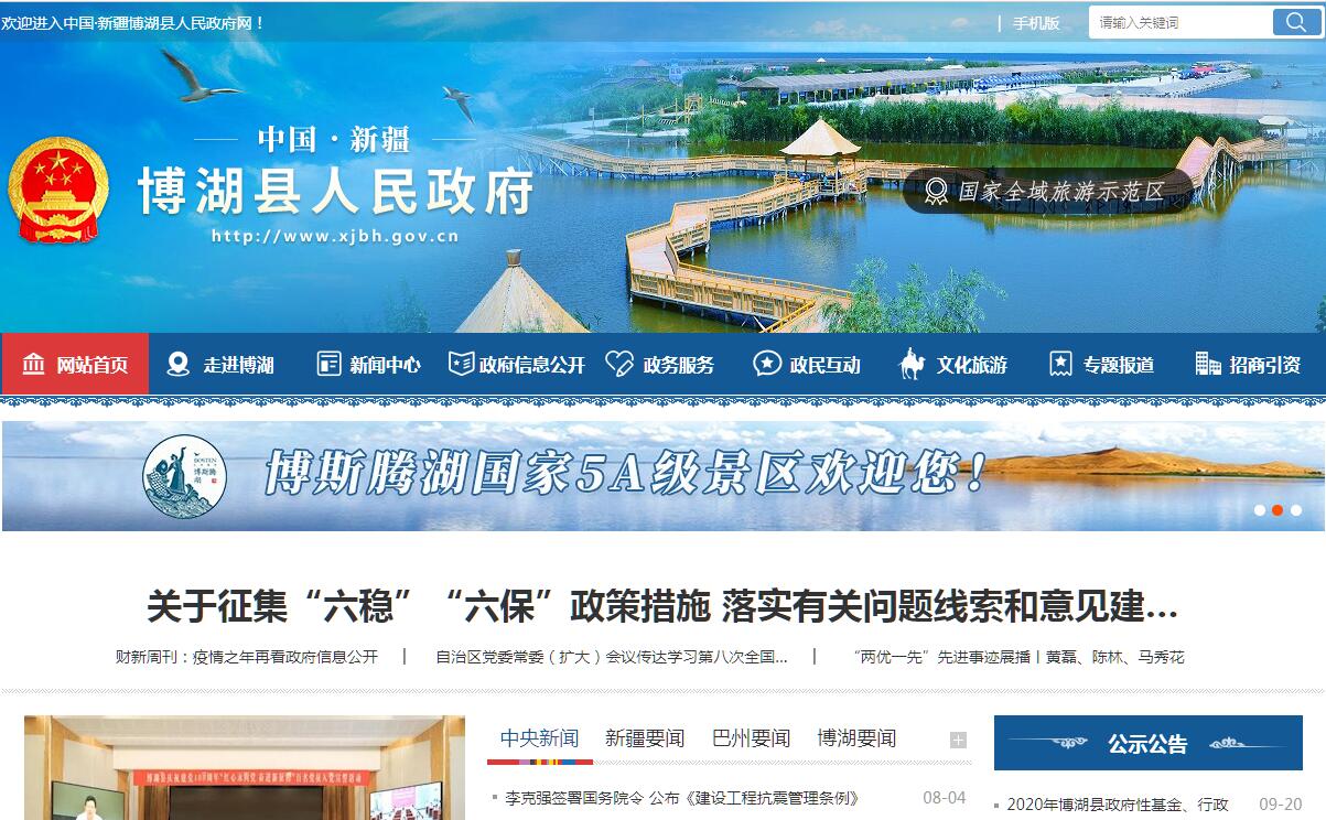 博湖县人民政府官方门户网站。