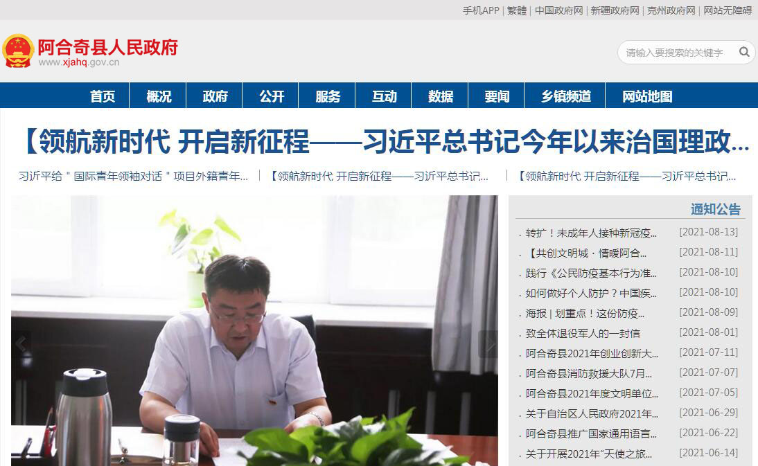 阿合奇县人民政府官方门户网站。