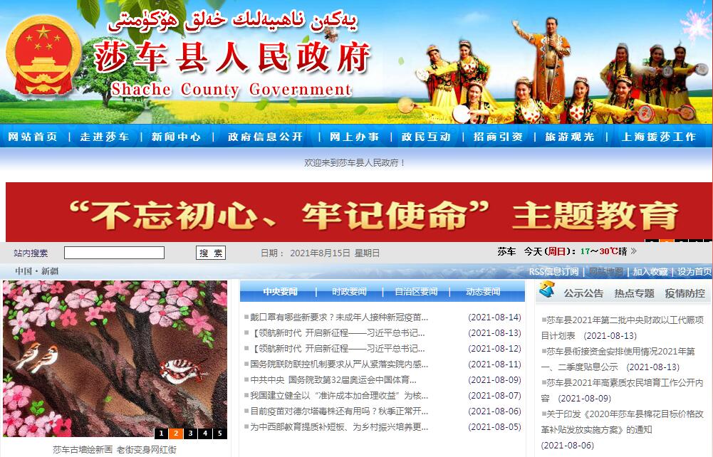 莎车县人民政府官方门户网站。