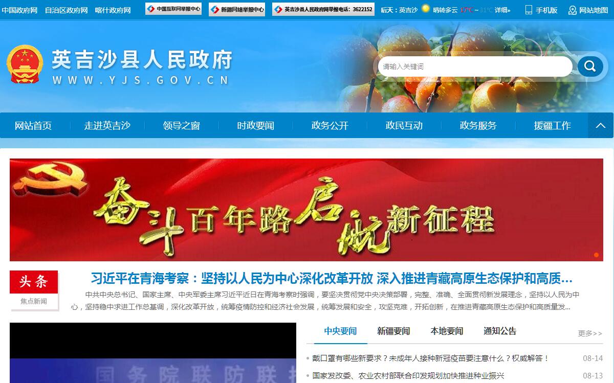 英吉沙县人民政府官方门户网站。