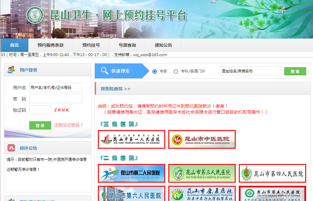 昆山市卫健委网上预约挂号平台官方网站。
