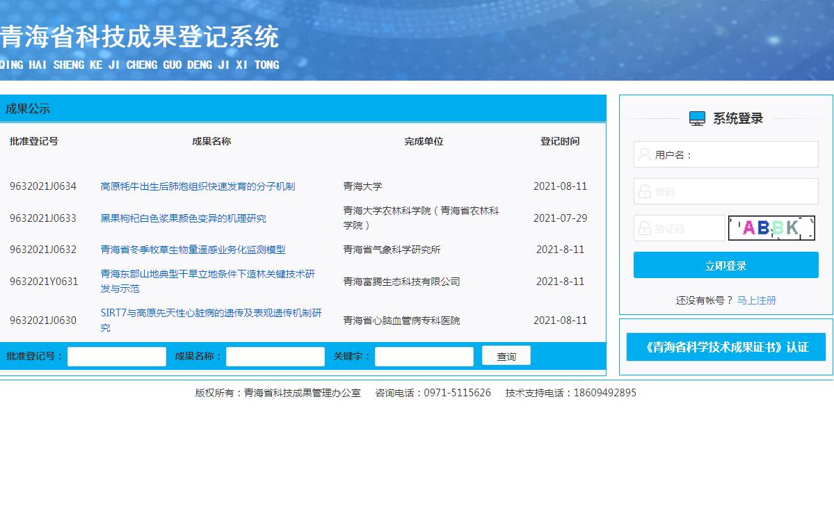 | 网站简介: 青海省科技成果登记系统官方网站。 |